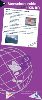 Tafeln zu den 12 Thesen der Weltfrauenkonferenz in Peking 1995.Die Ausstellung entstand im Rahmen einer 8.März Veranstaltung und kann ausgeliehen werden.